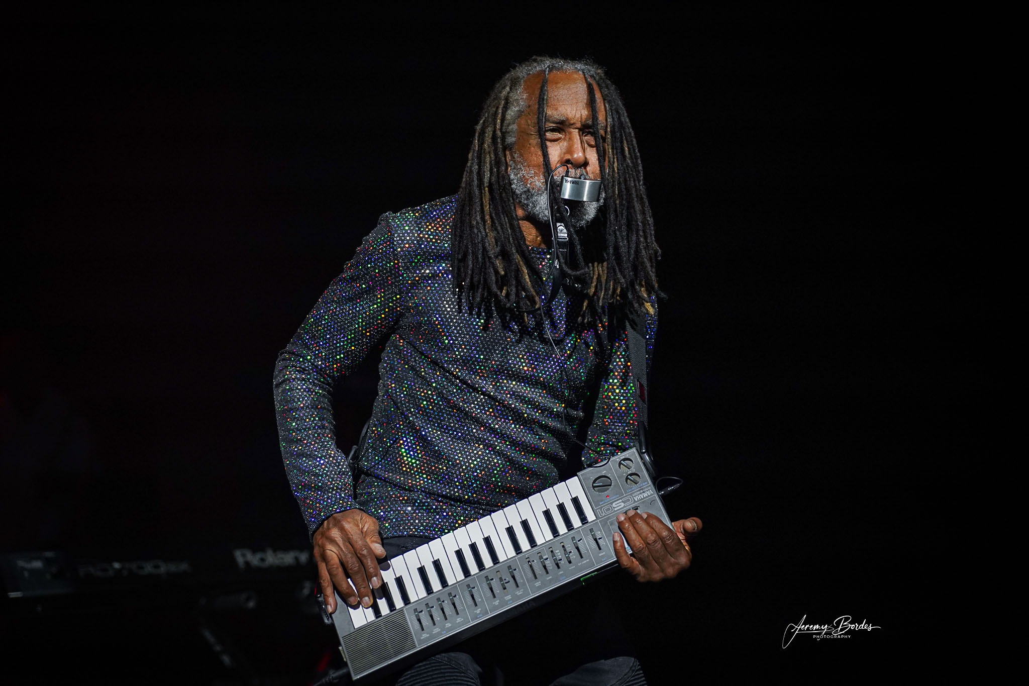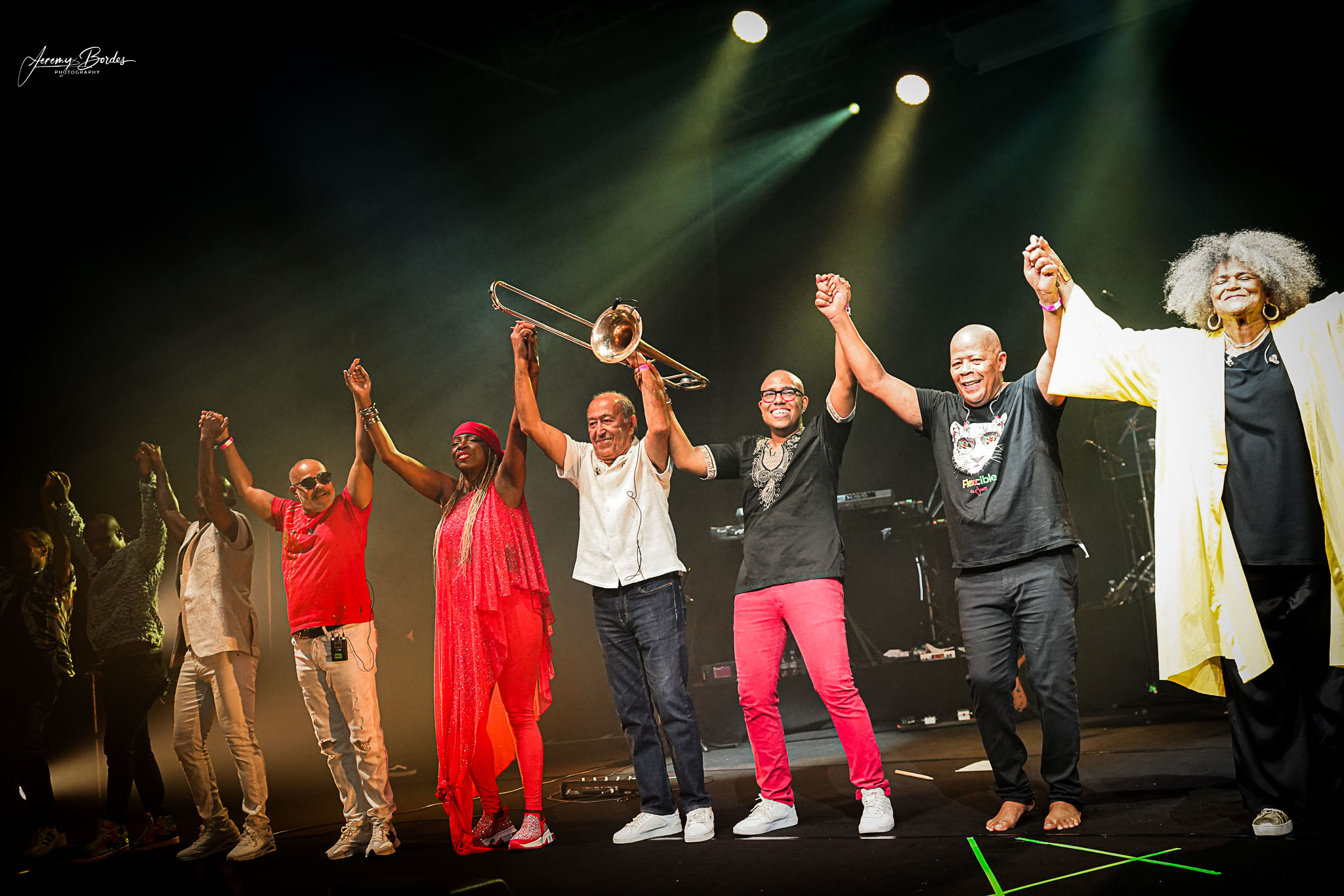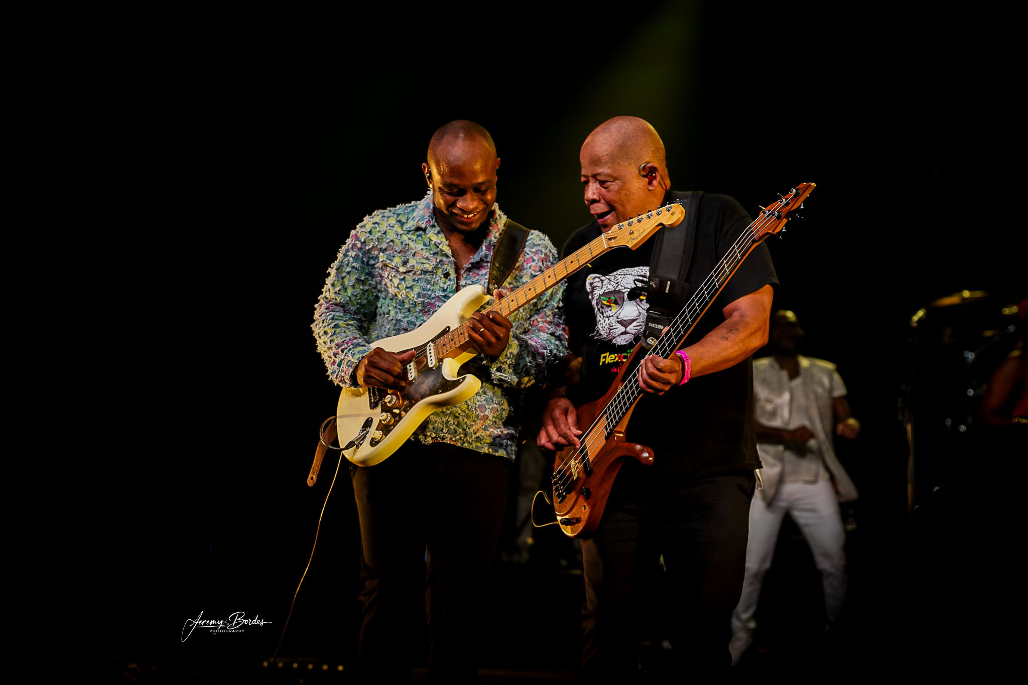 Puis est venu le moment tant attendu : l’entrée sur scène de Kassav. Fidèle à sa réputation, le groupe a soigné son arrivée, chacun des membres rejoignant la scène sous les acclamations d’une salle déjà en effervescence. Les premières notes ont suffi pour déclencher une vague d’enthousiasme.