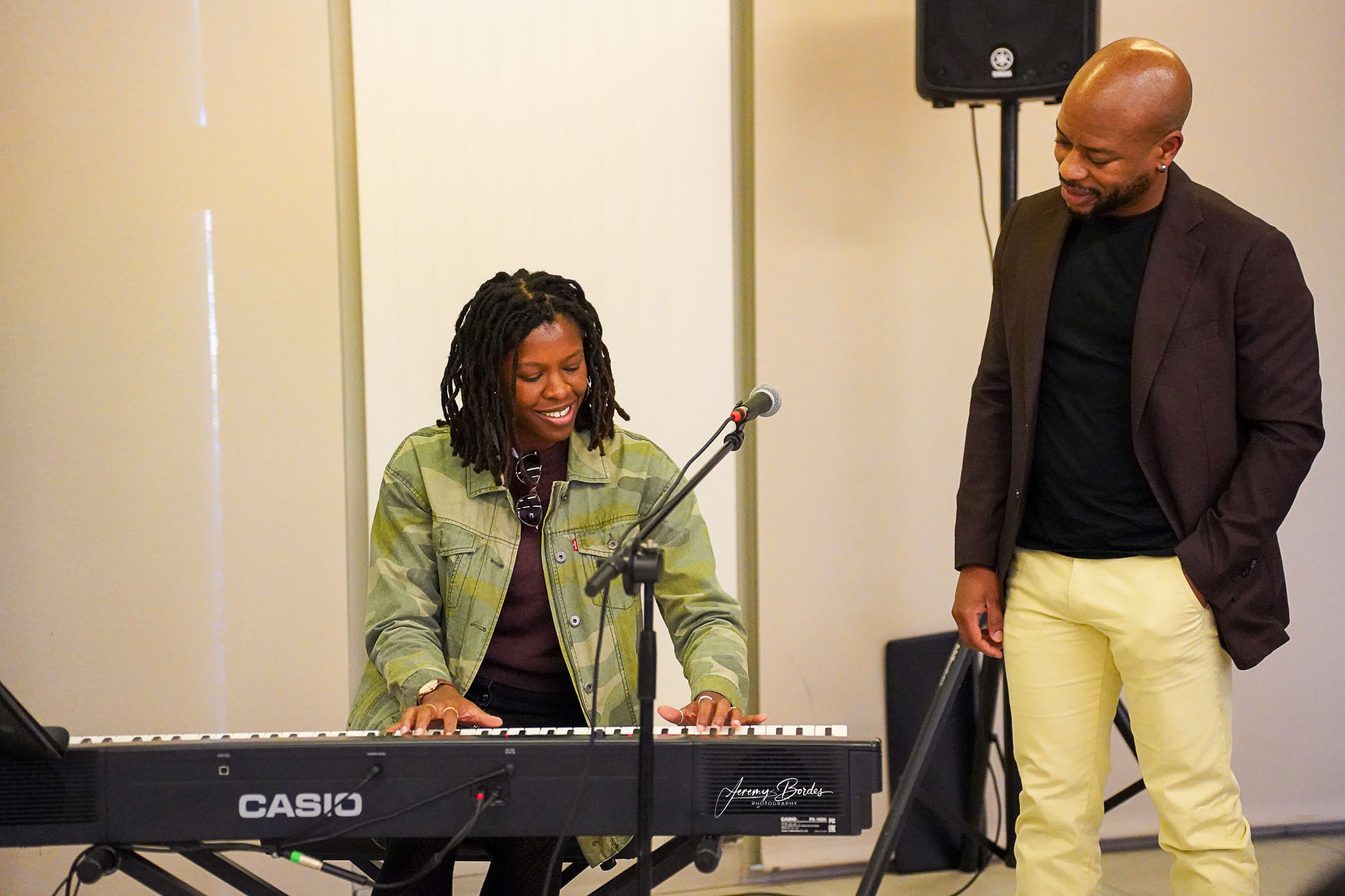 Dès les premières minutes, les deux artistes ont su créer une atmosphère à la fois conviviale et studieuse. Chacun a pris le temps de se présenter, revenant sur son parcours musical, ses influences et sa manière d’aborder le piano entre tradition caribéenne, jazz et musiques actuelles. Ils ont également expliqué leur approche de la musique par rapport à l’instrument, la manière dont ils construisent leurs compositions, et comment le rythme et l’harmonie s’entrelacent dans leur univers créatif.